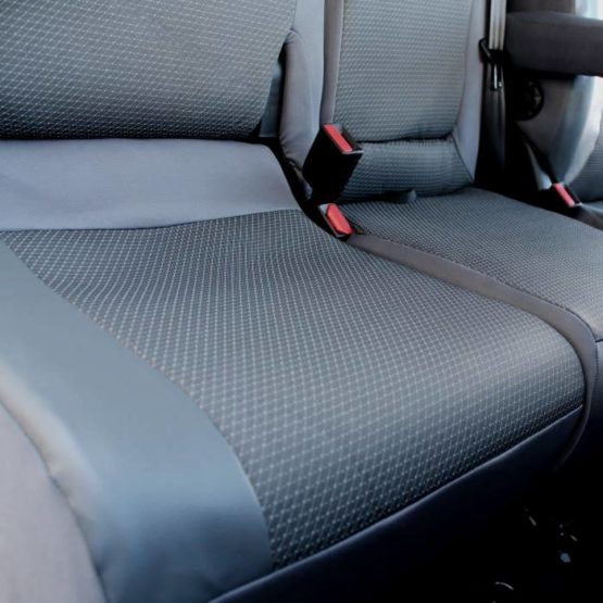 Housses pour Peugeot Expert 3 (après 2016) sur mesure en tissu et simili-cuir. Ces housses robustes sont conçues pour un usage professionnel. et les activités les plus difficiles. Elles possèdent un renfort sur les parties les plus sensibles à l’usure ainsi que des coutures doublées. Pour le confort du conducteur et des passagers, elles sont également équipées d’une couche de mousse supplémentaire dans le dossier. Leur pose s’effectue facilement grâce grâce à des élastiques et crochets métalliques fournis. Ce système de fixation assure une tenue impeccable et évite le risque d’affaissement.